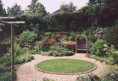In our own garden I designed a circular path and new planting areas to replace the lawn and planted a wide range of shrubs, perennials and bulbs.